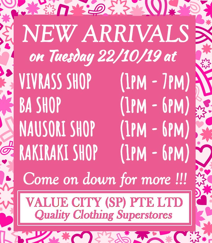 New Stock on 22nd October 2019 at the below shop locations; Vivrass Ba Rakiraki Nausori