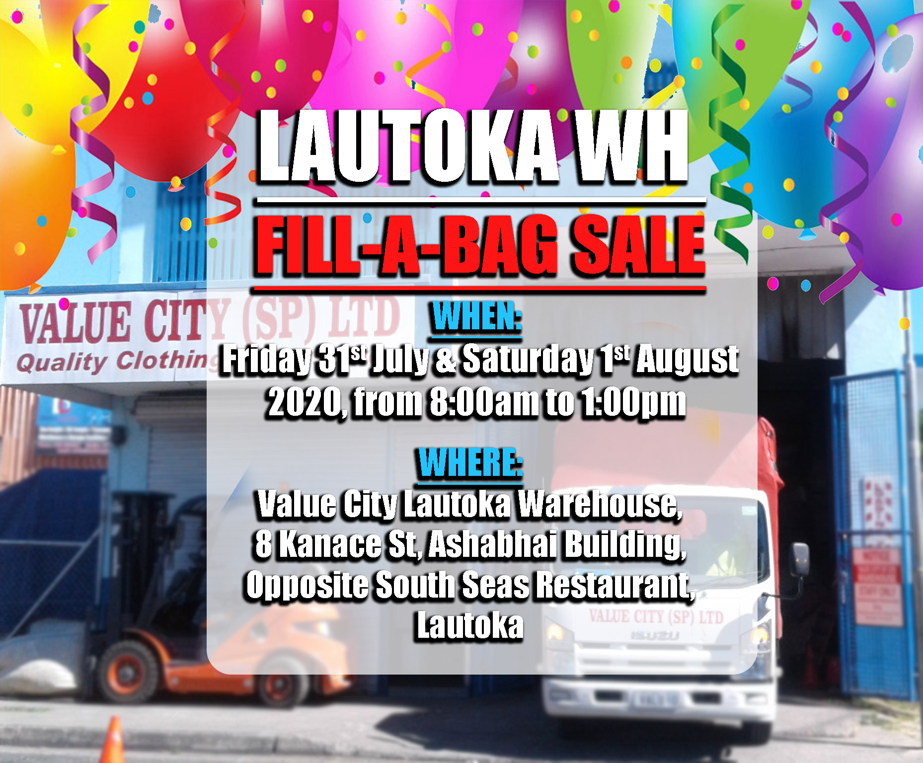 LAUTOKA WAREHOUSE FILL-A-BAG SALEis on this Friday 31st July & Saturday 1st August 2020at the Value City Lautoka Warehouse, located on 8 Kanace St, Ashabhai[…]