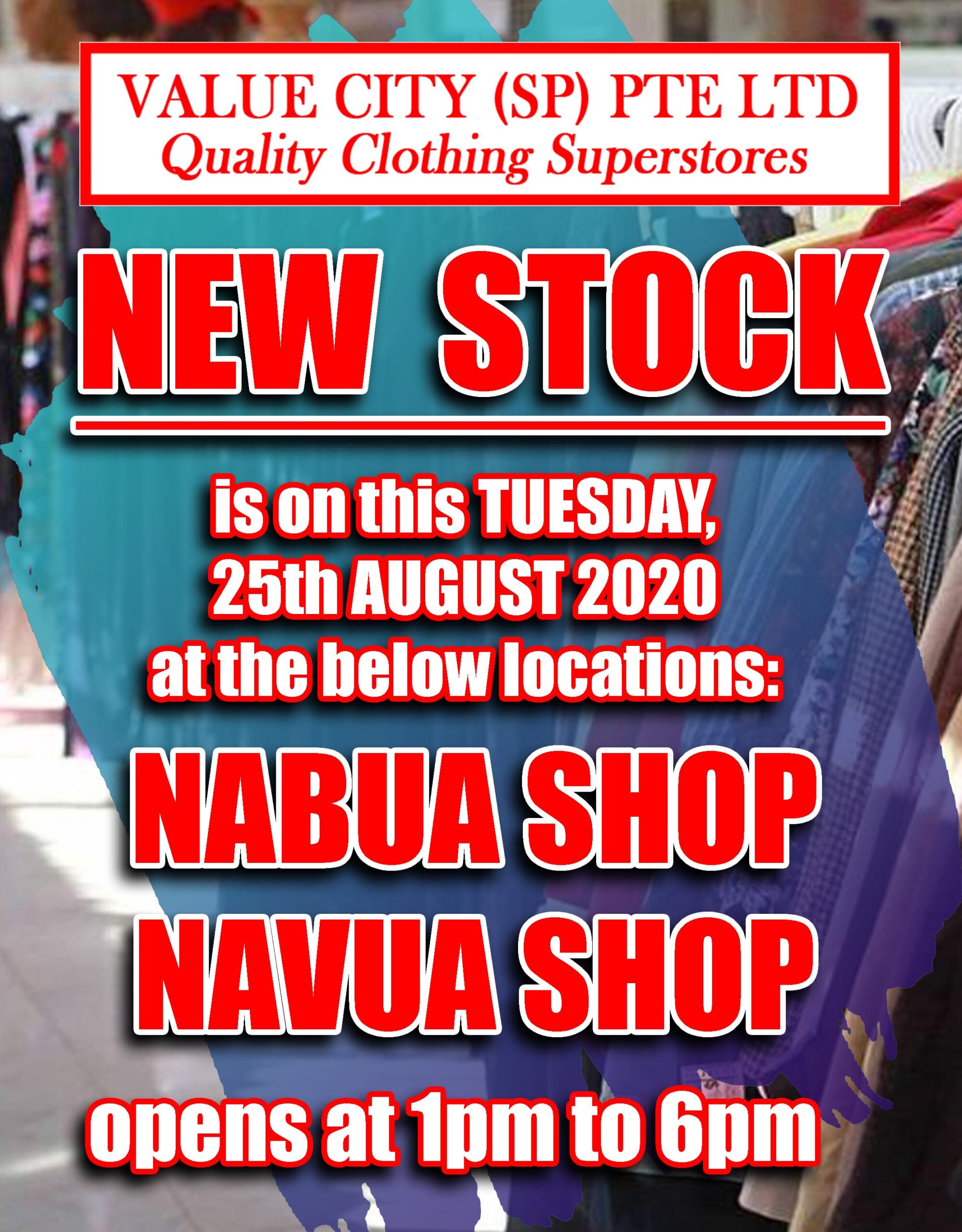 New Arrivals:on this Tuesday 28th July 2020, at the below shop locations: NABUA SHOP NAVUA SHOP opens from 1pm to 6pm